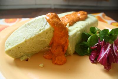 Dejar enfriar, desmoldar y acompañar con salsa romesco y unos brotes frescos.