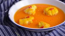 Capítulo 71: Crema de calabaza ligeramente picante con tacos de rape al azafrán y Taquitos de quesos variados con aromas fritos en pasta fresca