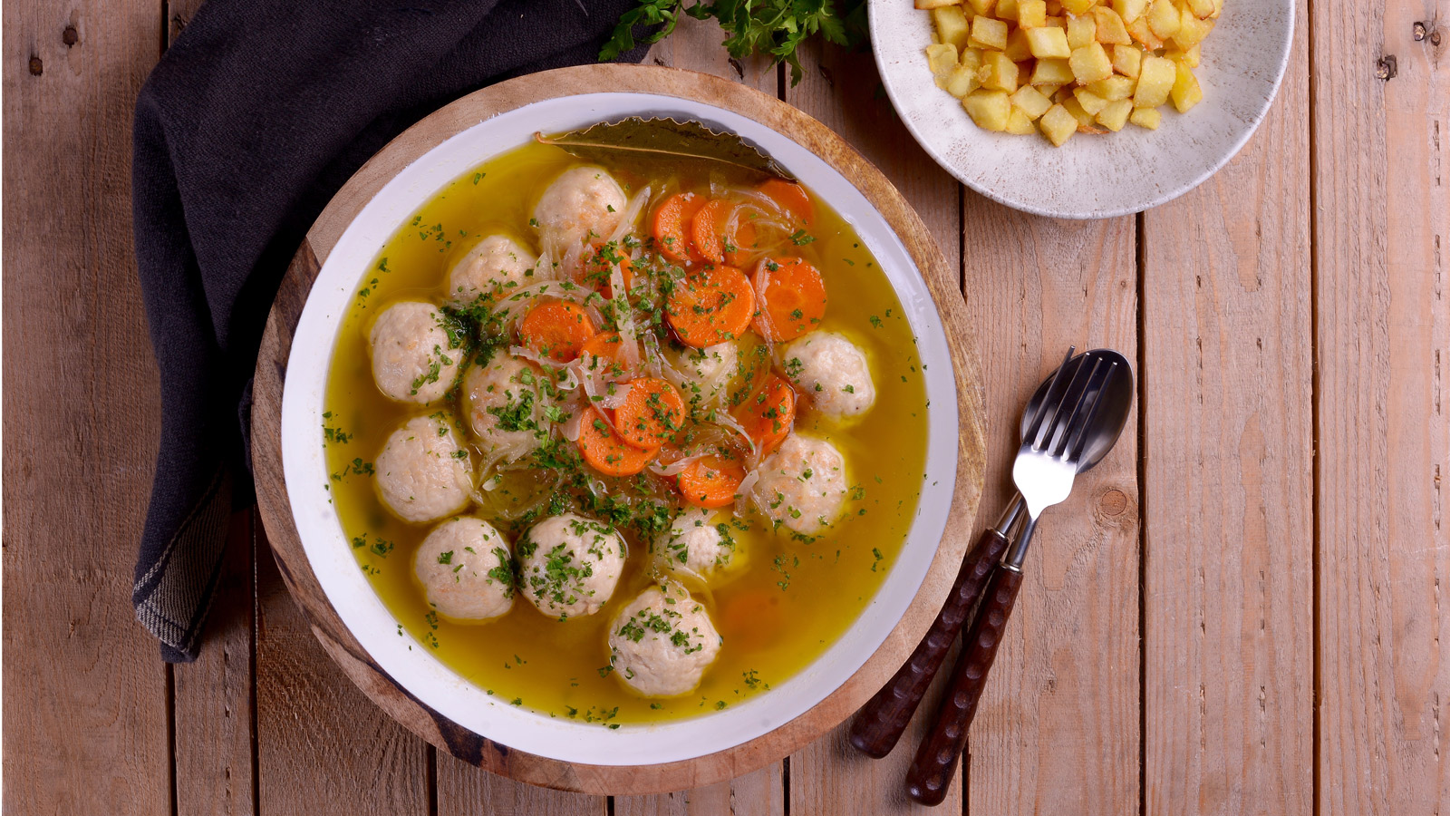 En el capítulo 24 del programa de televisión Sabor de Hogar T2, Juan Pozuelo prepara la receta de Albóndigas de pollo en escabeche.