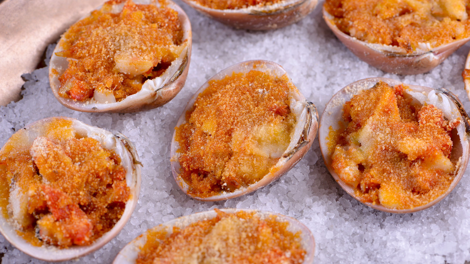 En el capítulo 22 del programa de televisión Blanca Navidad, Blanca Mayandía prepara la receta de Almejas de concha fina rellenas y gratinadas.