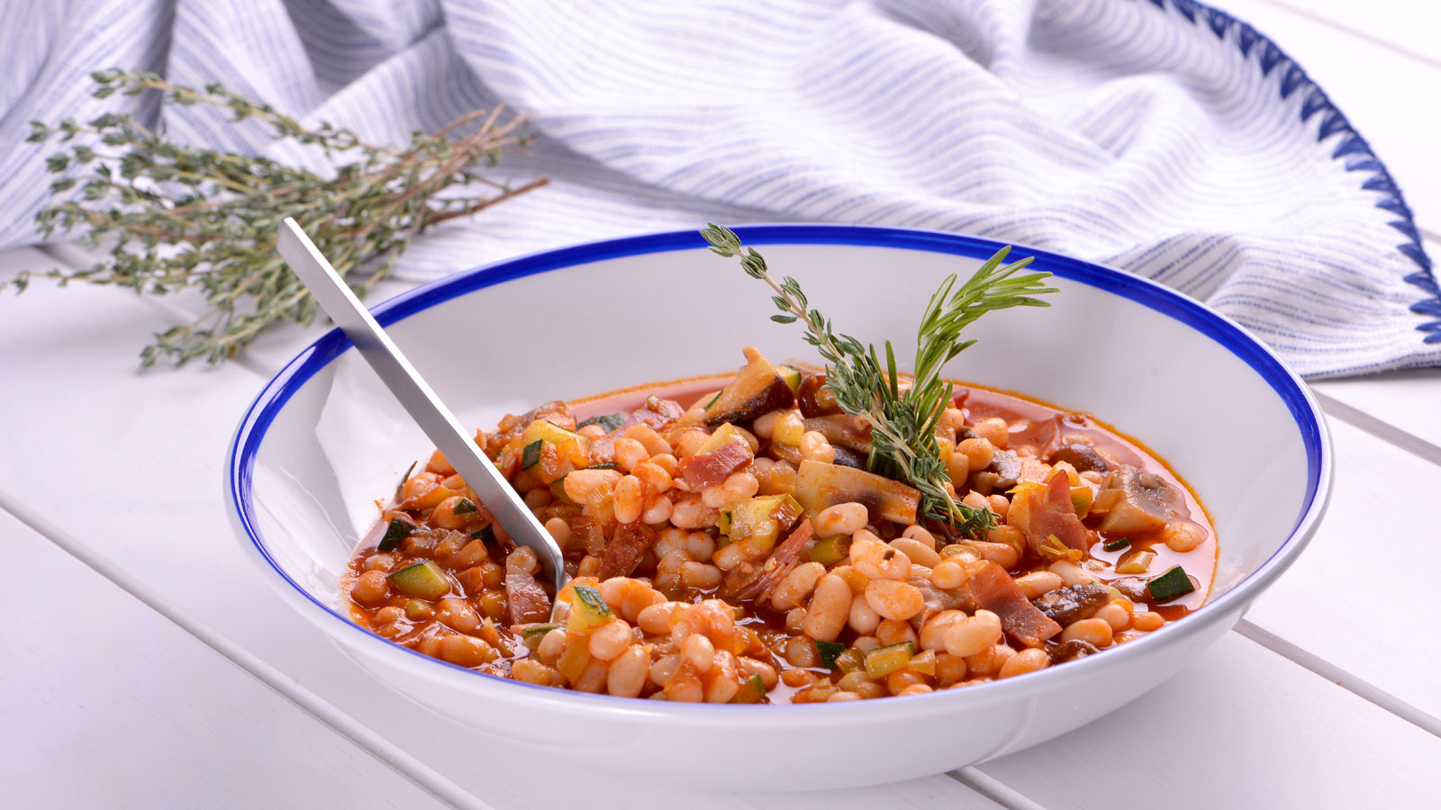 Alubias blancas con setas y jamón