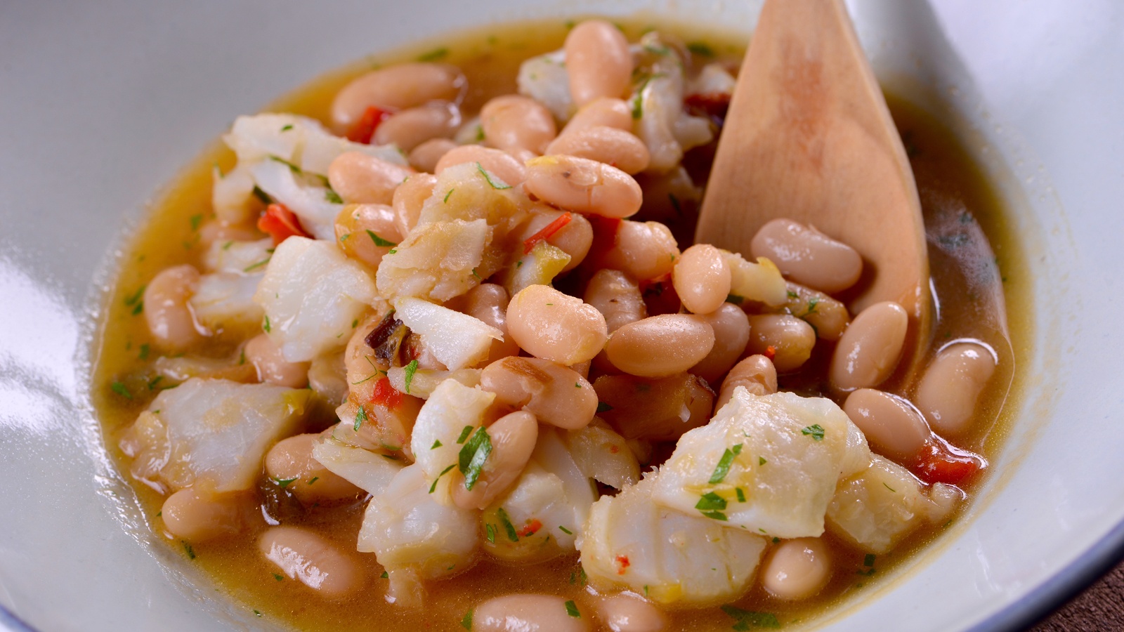 En el capítulo 666 del programa de televisión Cocinamos contigo T6, Sergio Fernández prepara la receta de Alubias con migas de bacalao.