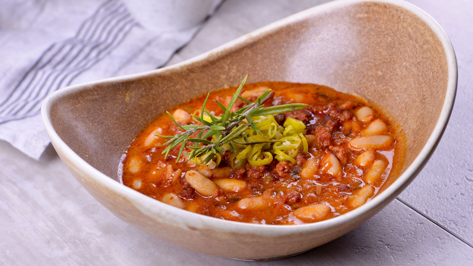 En el capítulo 539 del programa de televisión Los 22 minutos de Julius T4, Julius - Julio Bienert prepara la receta de Alubias con picadillo y romero.