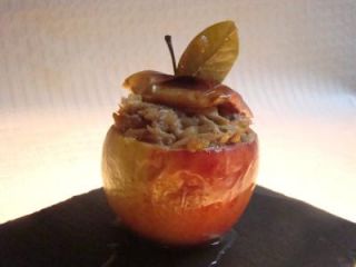 Ahora viene lo más fácil... Vamos a rellenar las manzanas con la carne deshebrada mezclada con la salsa chutney y las cubrimos con su "sombrerete". Horneamos durante media hora y lista nuestra receta Apple-porky con su chutney ;)