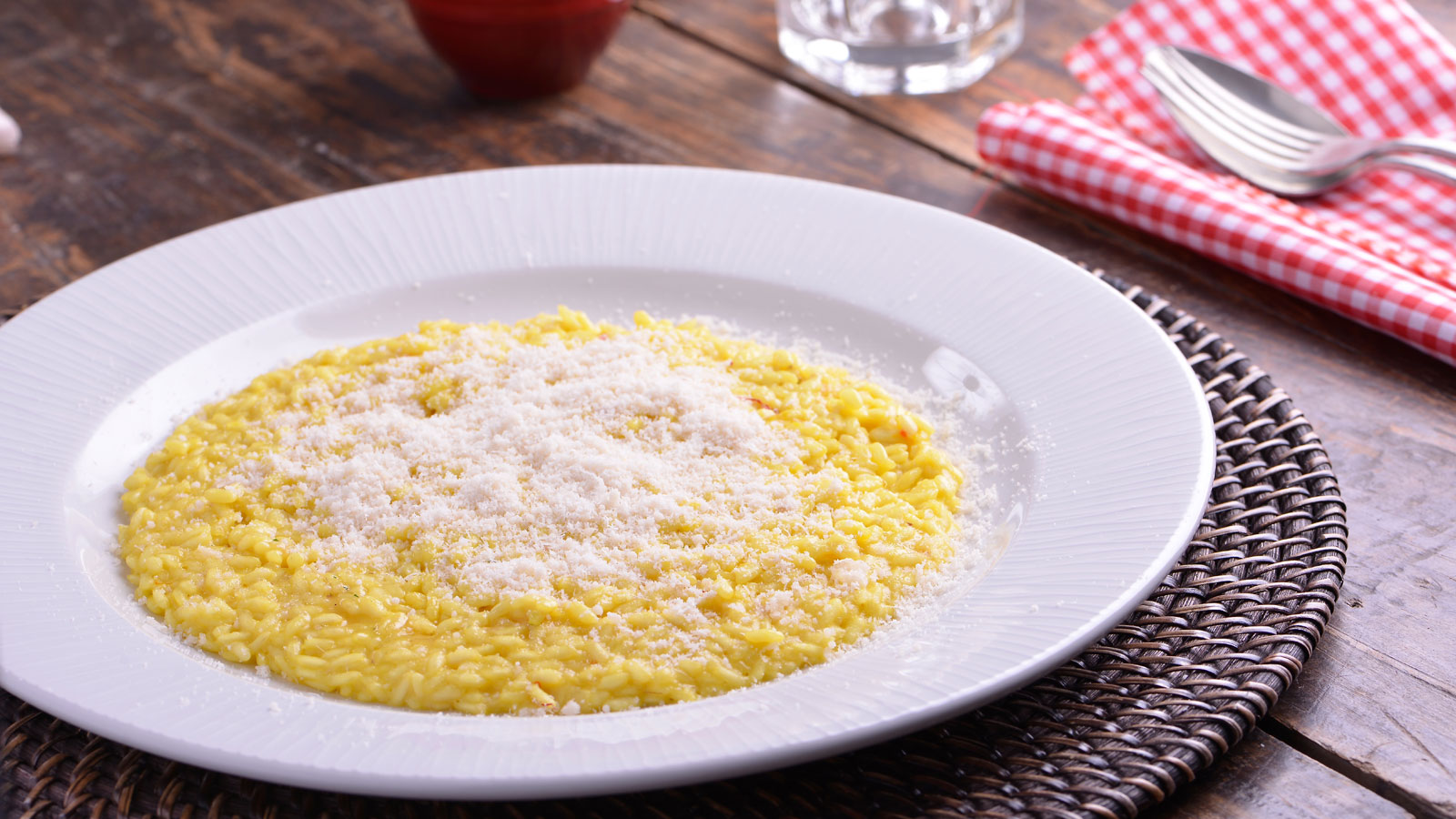 En el capítulo 3 del programa de televisión Cocina italiana con Matteo de Filippo, el cocinero italiano Matteo de Filippo prepara la receta tradicional de Arroz con azafrán o Risotto alla milanese.