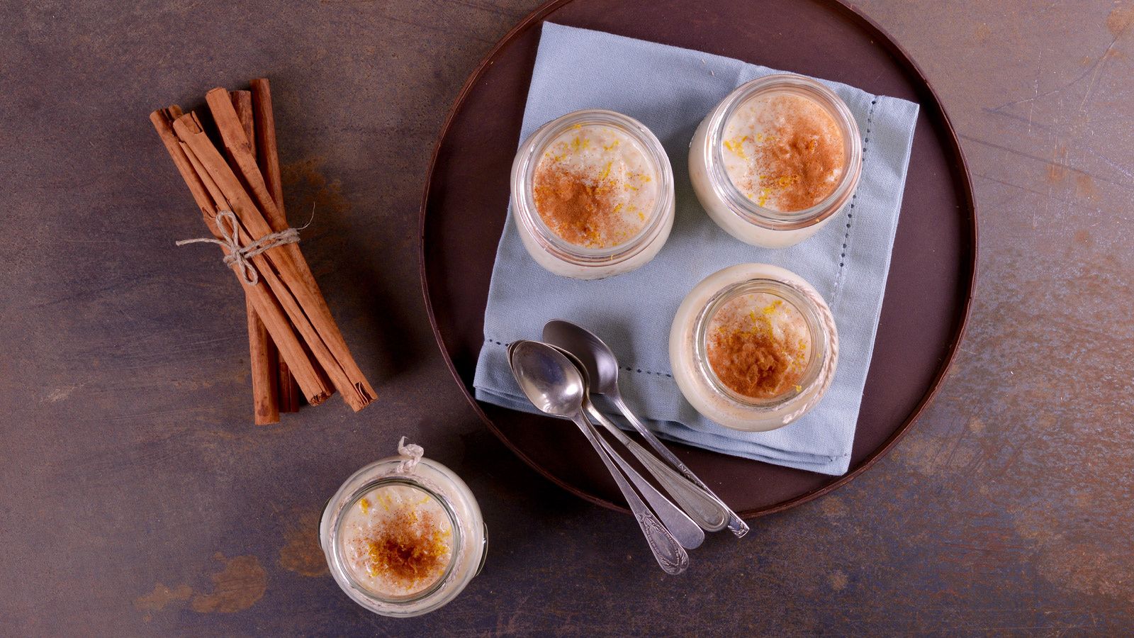 Arroz con leche, limón y canela