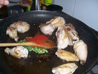 Seguimos sofriendo el pollo, dorándolo bien por todos lados, una vez listo añadimos el ajo y el perejil bien machacado con el mortero, sofreímos un minuto.