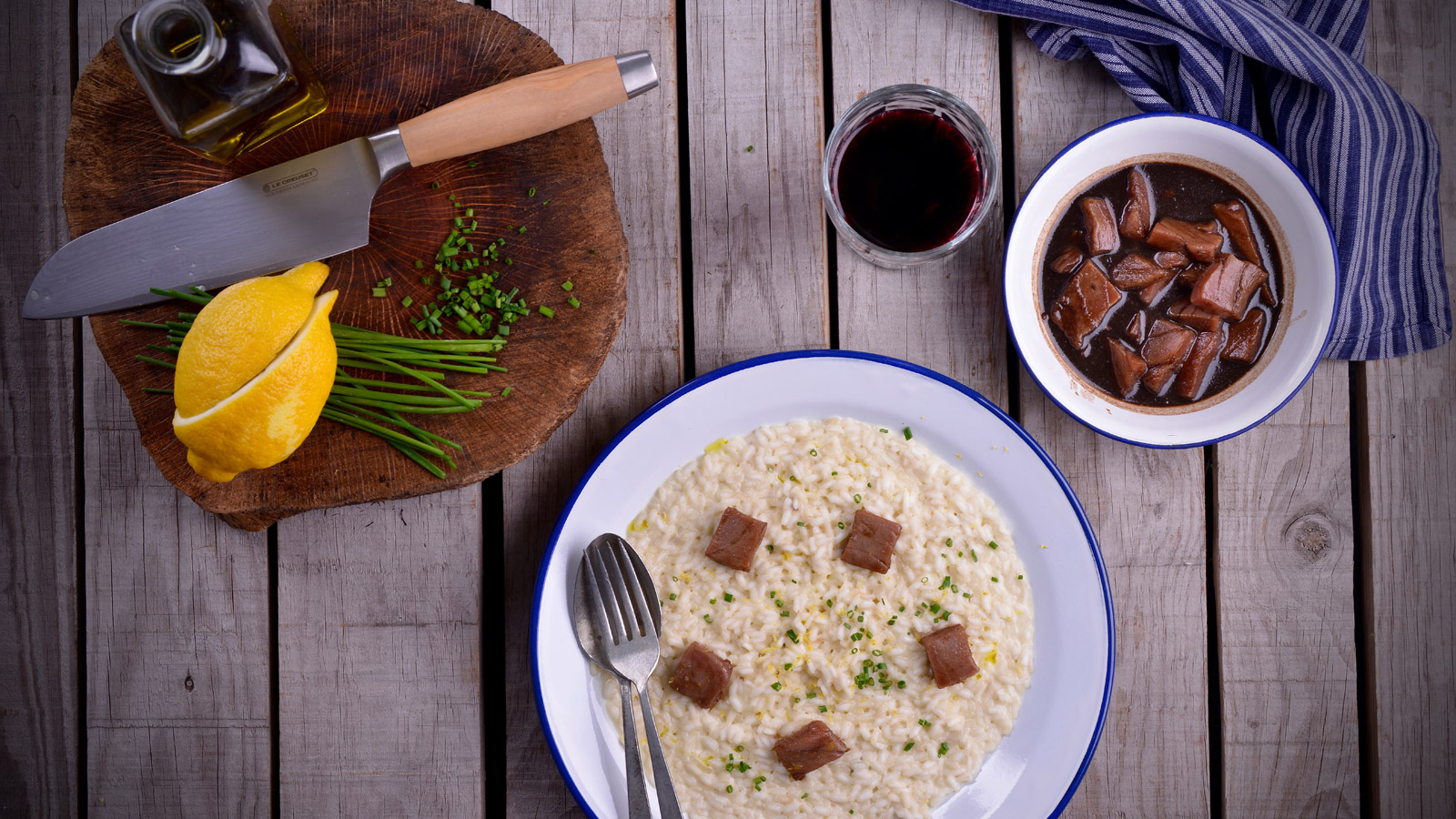 En el capítulo 168 del programa de televisión La cocina de Nicola T8, el chef Nicola Poltronieri elabora esta deliciosa receta de Atún fresco marinado en Módena con risotto de burrata. Un plato de la cocina italiana como es el risotto, con un toque diferente gracias al atún marinado en vinagre de Módena.