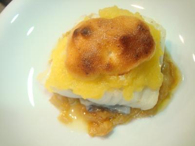 Bacalao con compota de manzana