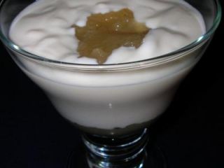 - En una copa, alternar capas de yoghourt y compota de manzana
