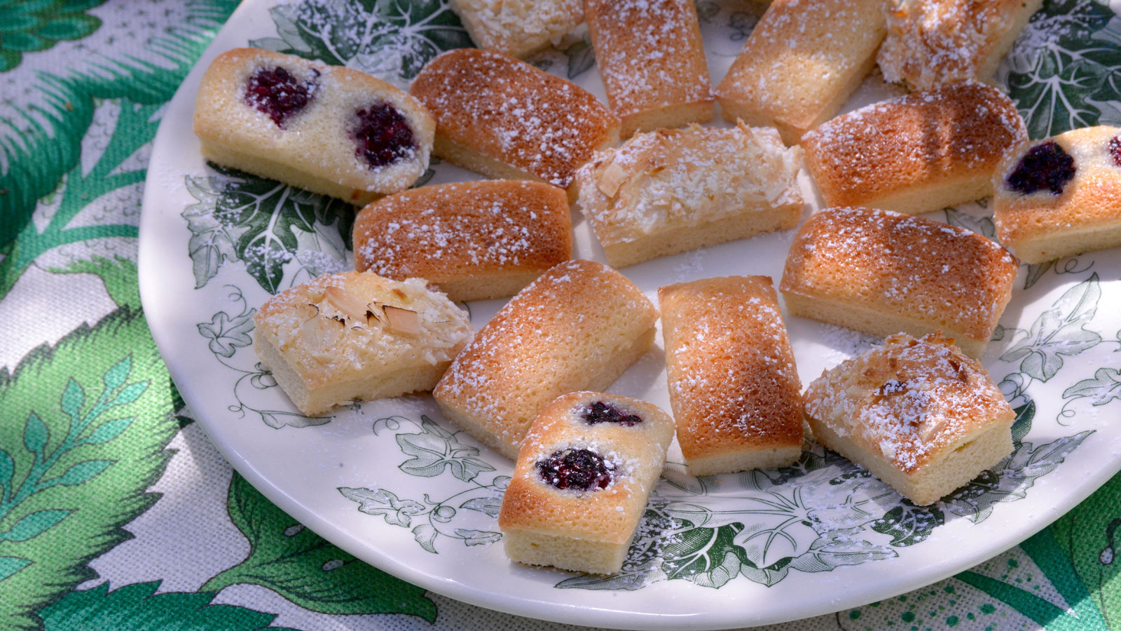 En el episodio 2 del programa Cenas al aire libre, el cocinero Pablo Vicari prepara una receta de Bizcochito financier de almendras y moras para una merienda en el jardín.