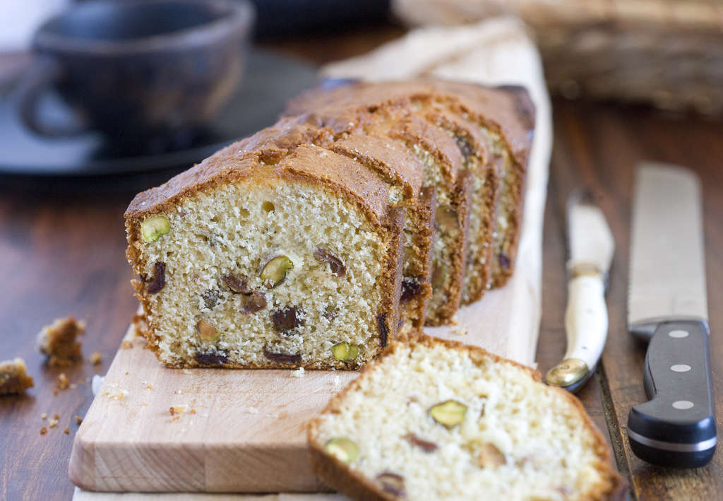 En un bol agregamos el azúcar y batimos con los huevos que los iremos echando de uno en uno. Después, incorporamos el aceite y el yogur, batimos. Ahora añadimos la harina, la levadura y la sal tamizadas en dos tandas. Mezclamos y por último, agregamos los dátiles partidos en trozos y los pistachos pelados enteros.