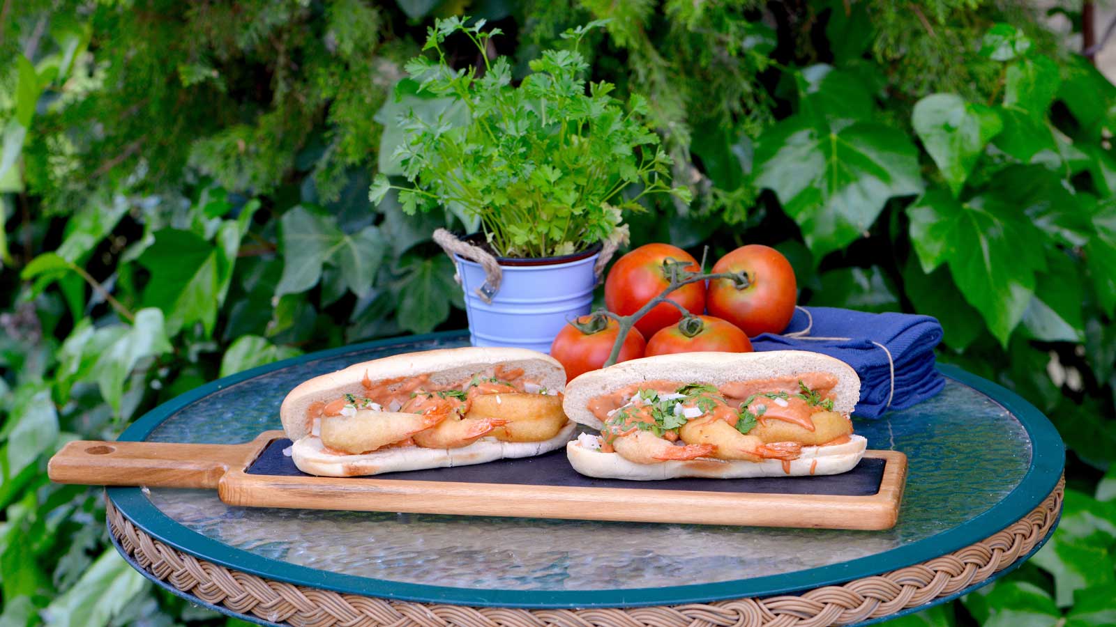 Bocadillo de gambas en gabardina