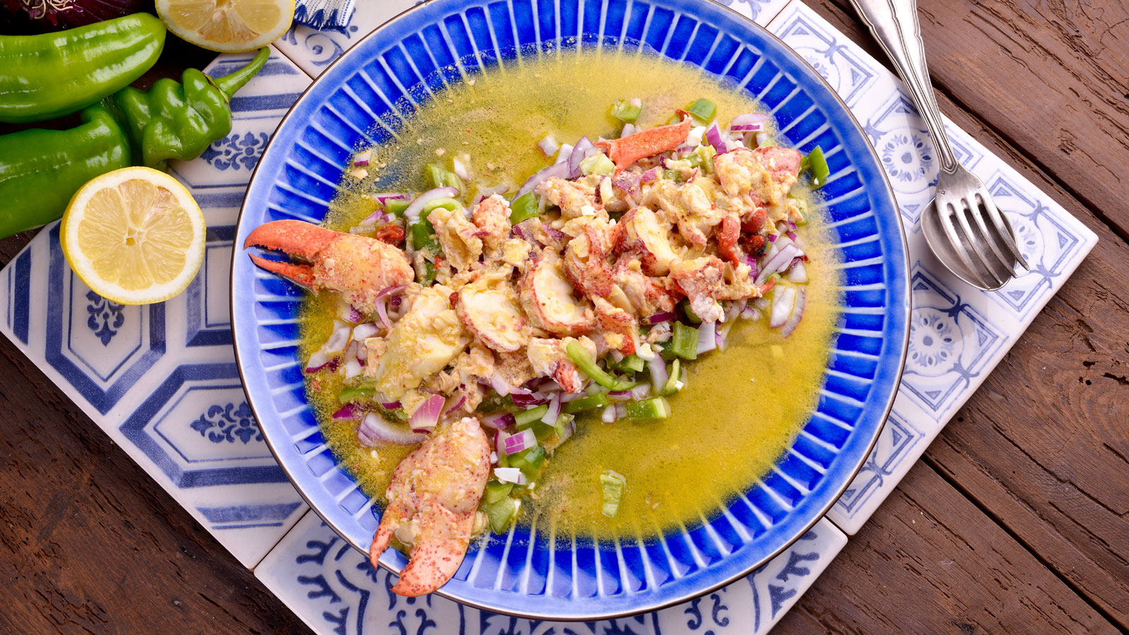 En el capítulo 16 del programa de televisión Cocina tradicional vasca, Luis Mokoroa prepara la receta de Bogavante en salpicón.