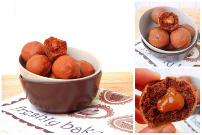 Bolas de brownie rellenas de dulce de leche