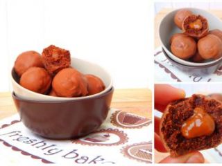 Cogemos migas de brownie, hacemos una bolita, la aplanamos, y cubrimos con eso el dulce de leche, sin apretar mucho