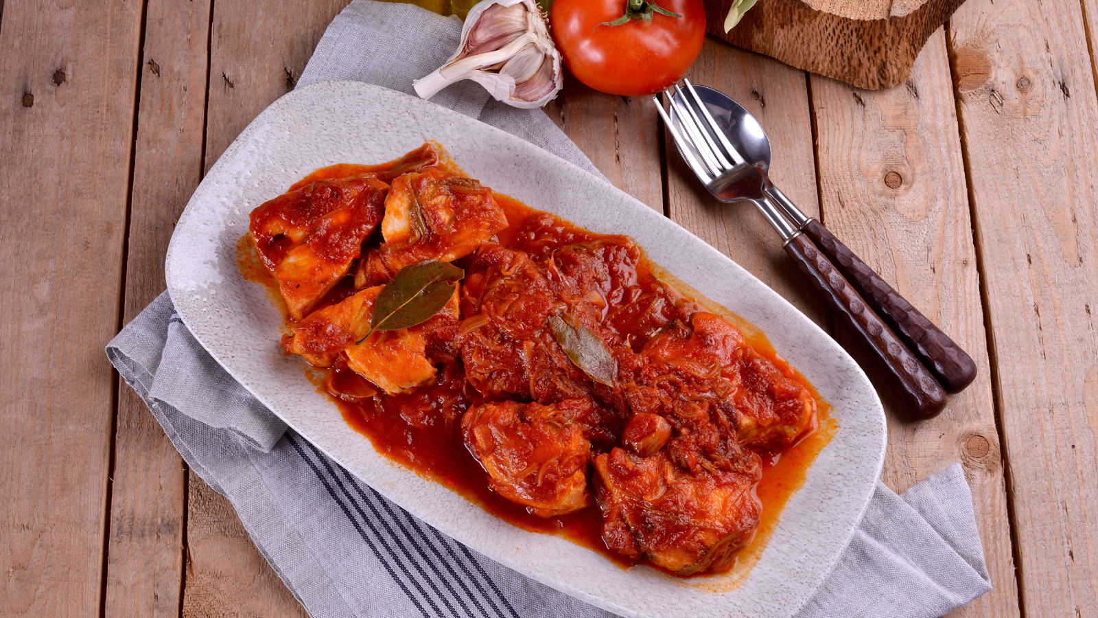 Bonito con tomate triturado