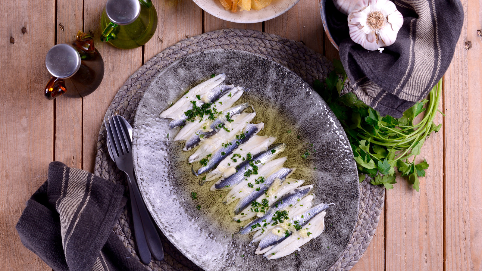 En el capítulo 11 del programa de televisión Sabor de Hogar, Juan Pozuelo prepara la receta de Boquerones en vinagre con patatas chips.