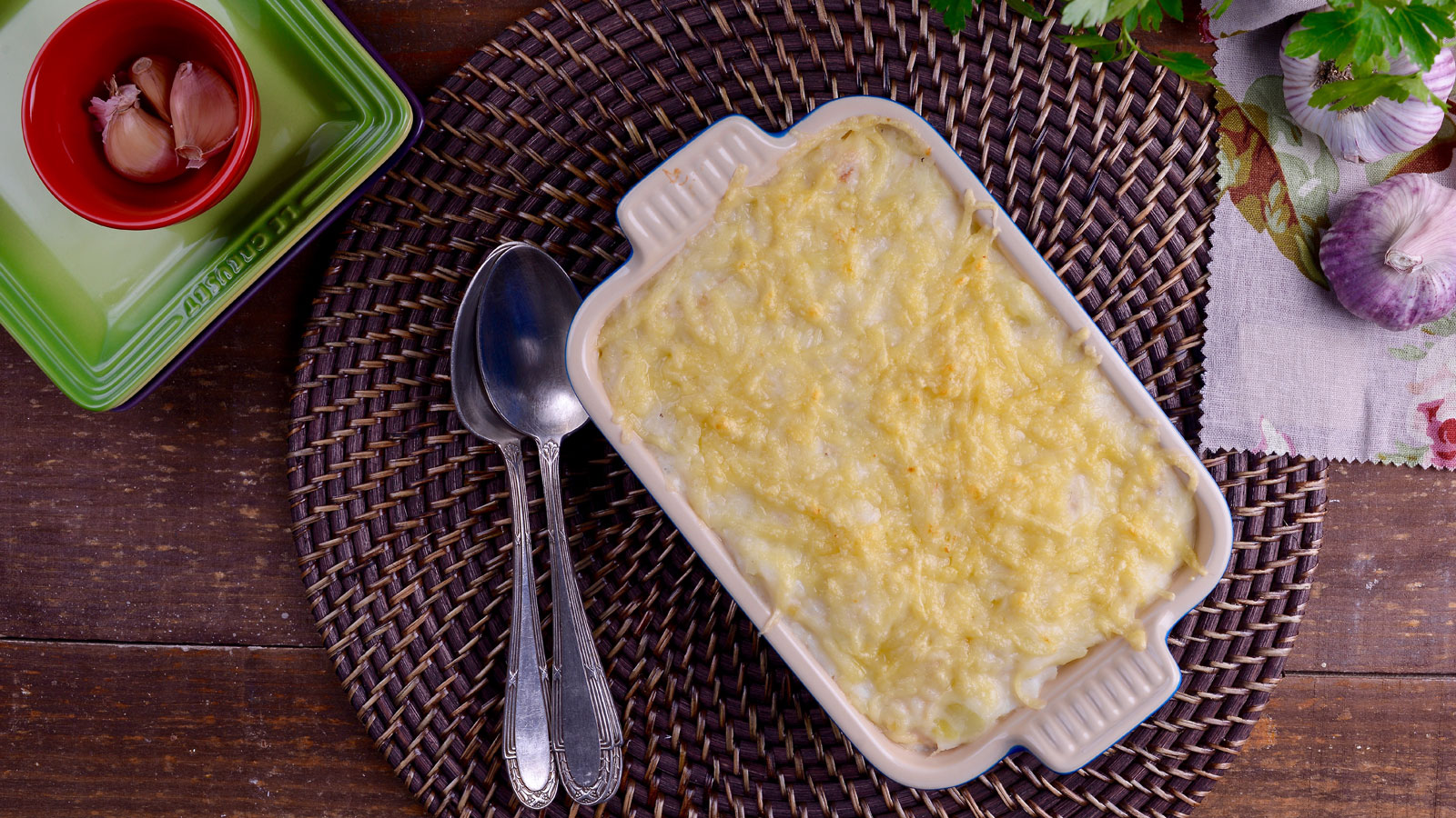 En el capítulo 43 del programa de televisión Cocina Francesa T2, nuestra cocinera Evelyne Ramelet prepara la receta de Brandada de bacalao (La brandade de morue de Bretagne). Para preparar esta receta debemos tener en cuenta que antes de comenzar hay que desalar el bacalao durante al menos 24 horas.