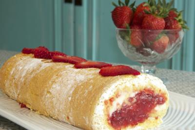 Brazo gitano de fresas a la pimienta y mascarpone