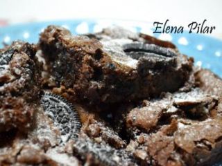 Cuando esté integrado, añadimos al bol las dos cucharadas de harina, el cacao en polvo y una pizca de sal. Y lo removemos todo con una espátula. A esta mezcla, le añadimos 50g de Oreos troceadas, y volvemos a remover.