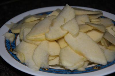 1.Pelar las manzanas y descorazonarlas y cortarlas en gajos. Poner a caramelizar 50 gr de azúcar hasta que coja un color marrón claro, añadir las nueces y las manzanas cortadas,dejar durante unos 2 minutos.Retirar del fuego y dejar enfriar.