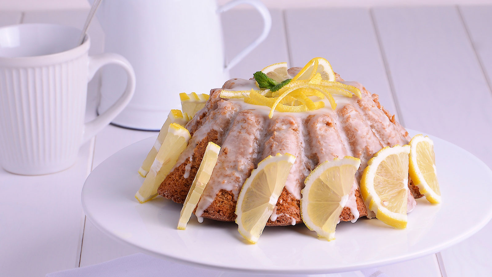 Retiramos el budín del horno y lo desmoldamos. Cubrimos con el glaseado de limón por encima.