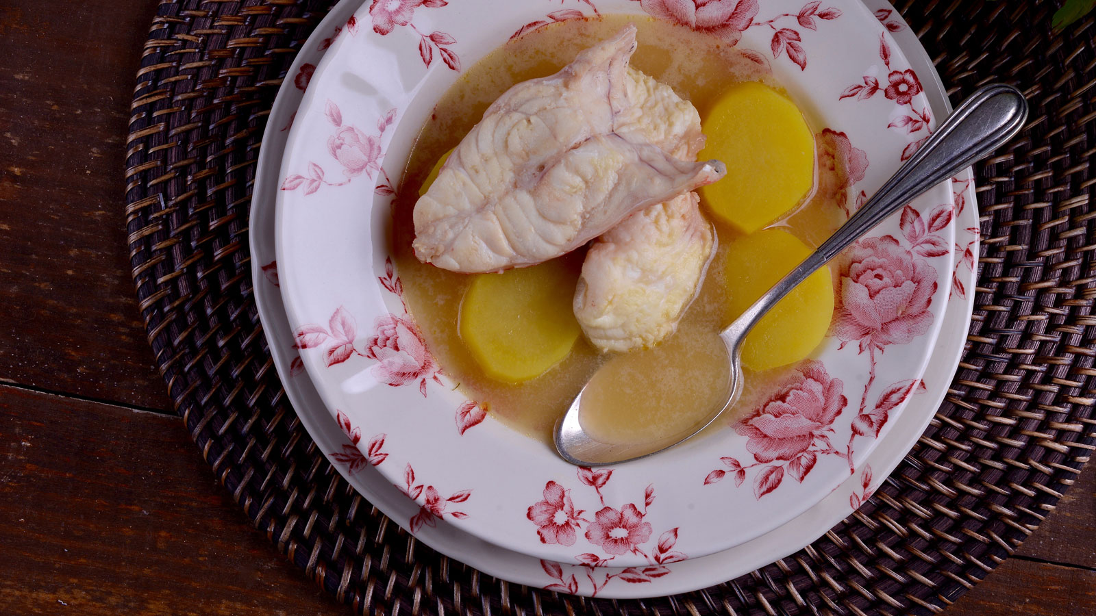 Servimos la bullabesa en cuatro platos.