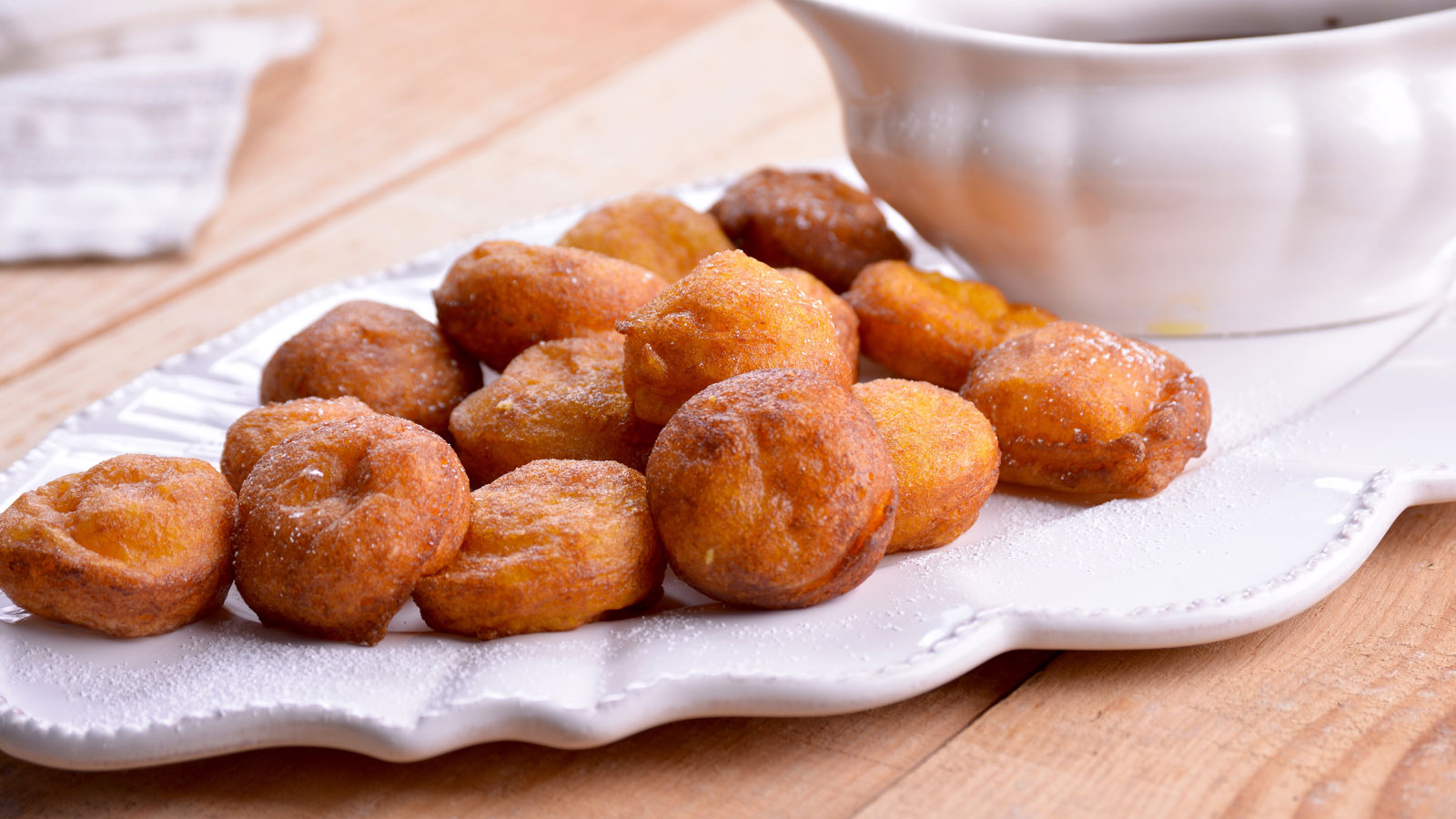 Colocamos una sartén al fuego con abundante aceite de girasol. Realizamos bolitas con la masa y las freímos en aceite muy caliente. Con la ayuda de una espumadera, las colocamos sobre una bandeja con papel absorbente para eliminar el exceso de aceite. Una vez escurridas las rebozamos en azúcar.