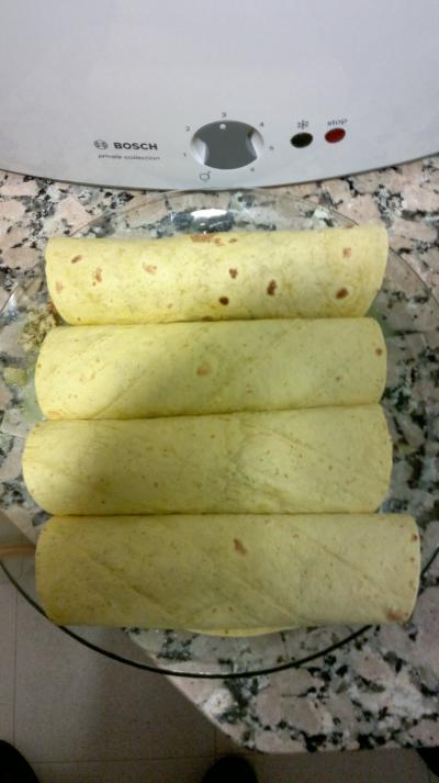 - 4 tortillas de maíz o trigo calientes de 20 cm