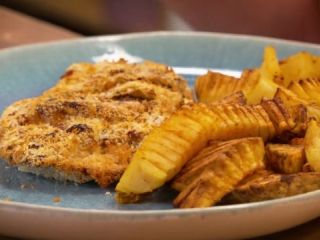 Lava bien las patatas y pélalas si lo prefieres. Coloca dos palillos a cada lado de la patata. Con un cuchillo afilado, haz cortes en espiral o en forma de acordeón girando la patata poco a poco, sin llegar a cortarla del todo, y abre suavemente los cortes para separar las “láminas”. Mezcla el aceite con el ajo en polvo, el pimentón, la sal y la pimienta, y pincela bien todas las patatas acordeón, procurando que el aliño entre en los cortes. Coloca las patatas en la cesta de la airfryer y cocina a 180 ºC durante 18–20 minutos, girándolas a mitad de tiempo, hasta que estén doradas y tiernas por dentro. Salpimenta ligeramente los filetes de ternera. Coloca sobre la mitad de ellos una loncha de jamón y una de queso, recortando si sobresale mucho, y tapa con otro filete para formar los “cachopines” rellenos, presionando los bordes para que cierren bien. Pasa cada cachopín primero por harina, después por huevo batido y, por último, por pan rallado o panko, asegurándote de que quedan bien empanados por todos los lados. Coloca los cachopines empanados en la cesta de la airfryer, sin amontonarlos. Pincélalos con un poco de aceite o rocíalos con aceite en spray. Cocina a 190–200 ºC durante 8–10 minutos; abre, dales la vuelta, vuelve a pincelar con un poco de aceite y cocina 3–5 minutos más, hasta que estén dorados y crujientes por fuera y el queso bien fundido en el interior. Sirve los cachopines de ternera recién hechos acompañados de las patatas acordeón.