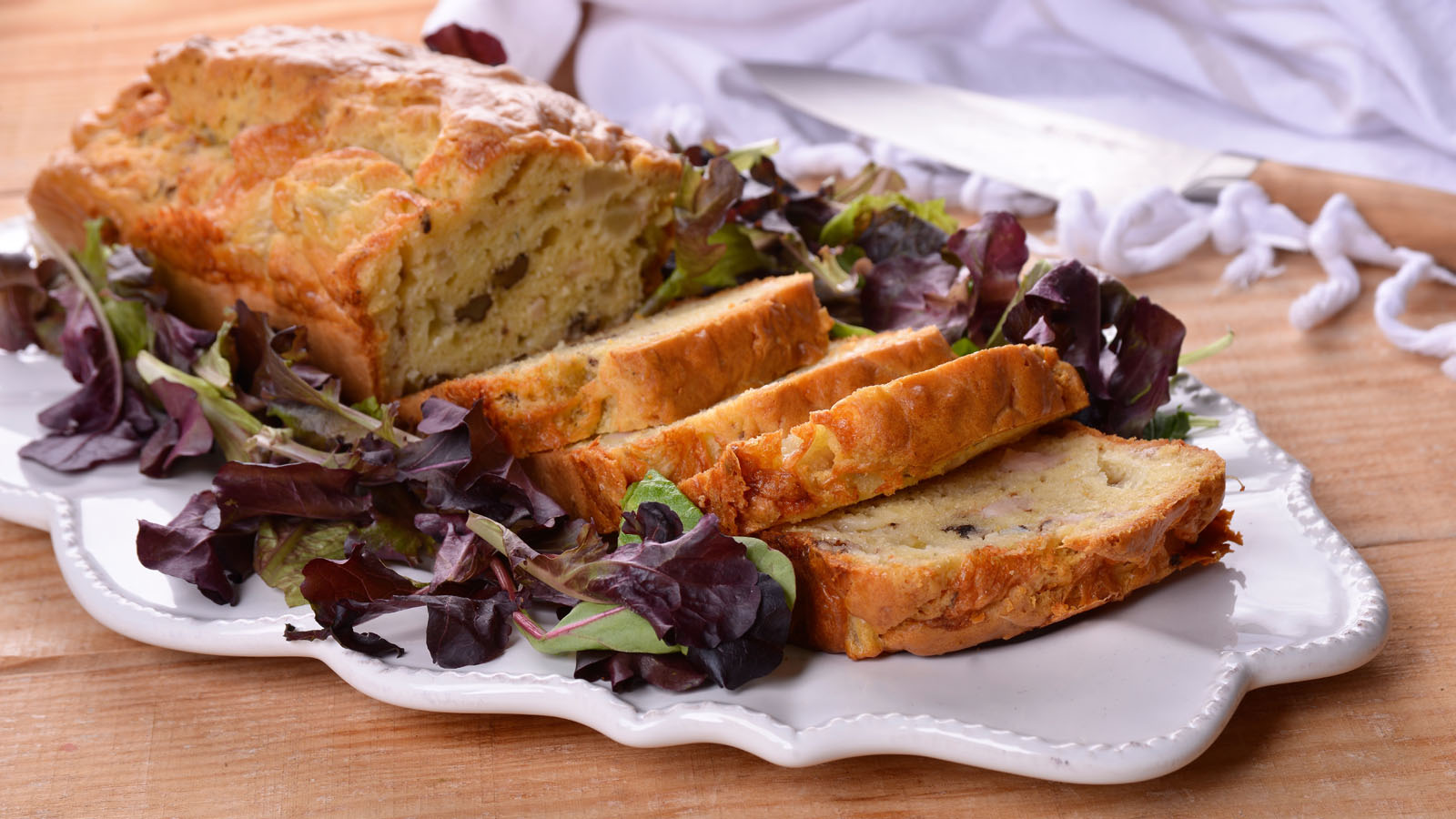 Cake de jamón, gorgonzola, peras y nueces (Bizcocho)