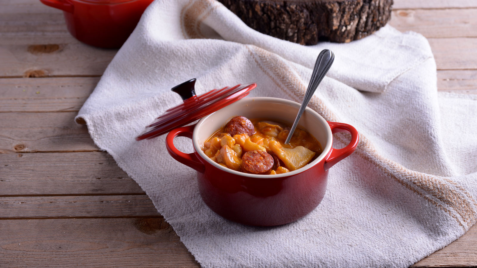 Vamos controlando la cocción y retirando los ingredientes según vayan estando hechos. Cortamos el chorizo.