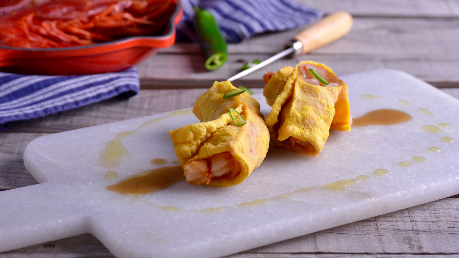 Canelón frito de carabineros envueltos en tocino