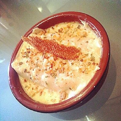 Canelones de foia,pollo y cruijiente de queso.