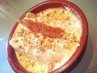Canelones de foia,pollo y cruijiente de queso.