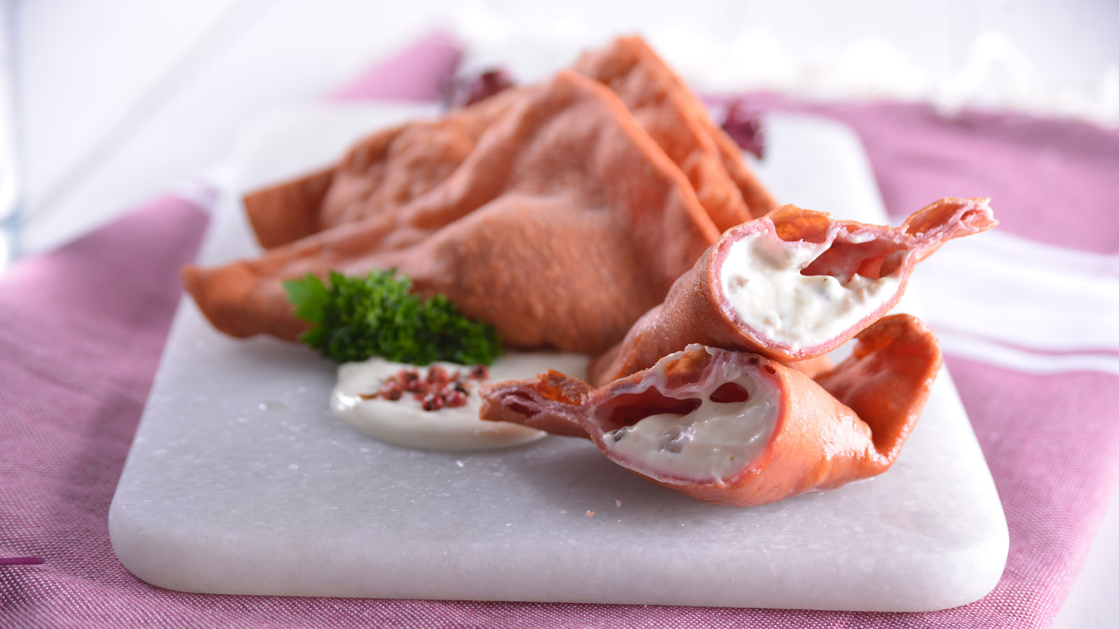 Canutillos fritos de remolacha y mascarpone