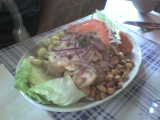 - 250 g. de mero , el zumo de 10 limones peruanos(lima) ,un grano de ajo picado , 50 grs. de rocoto(guindila peruana) molida o picada. , 50 g, de apio, picados , 50 g, de kion (jengibre) picados 50 g, d perejil y culantro(cilantro), 2 hojas de lechuga , 2 rodajas de patas cocidas , dos rodajas de camote(batatas)cocidas , maiz seco tostados. maiz fresco cocidas , 2 rodajas de papas (patatas)cocidas , media cebola roja cortadas muy finamente en juliana una rodaja de rocoto y sal pimienta al gusto.......