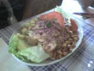 250 g. de mero , el zumo de 10 limones peruanos(lima) ,un grano de ajo picado , 50 grs. de rocoto(guindila peruana) molida o picada. , 50 g, de apio, picados , 50 g, de kion (jengibre) picados 50 g, d perejil y culantro(cilantro), 2 hojas de lechuga , 2 rodajas de patas cocidas , dos rodajas de camote(batatas)cocidas , maiz seco tostados. maiz fresco cocidas , 2 rodajas de papas (patatas)cocidas , media cebola roja cortadas muy finamente en juliana una rodaja de rocoto y sal pimienta al gusto.......