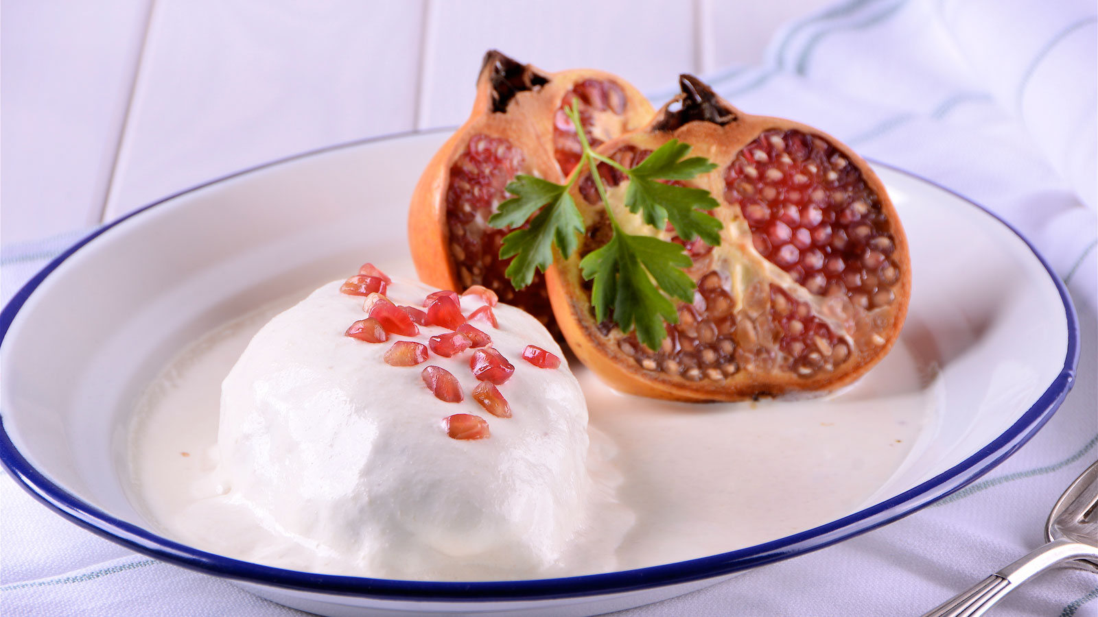 Los bañamos con la nogada y decoramos con los granos de la granada y perejil fresco picado.