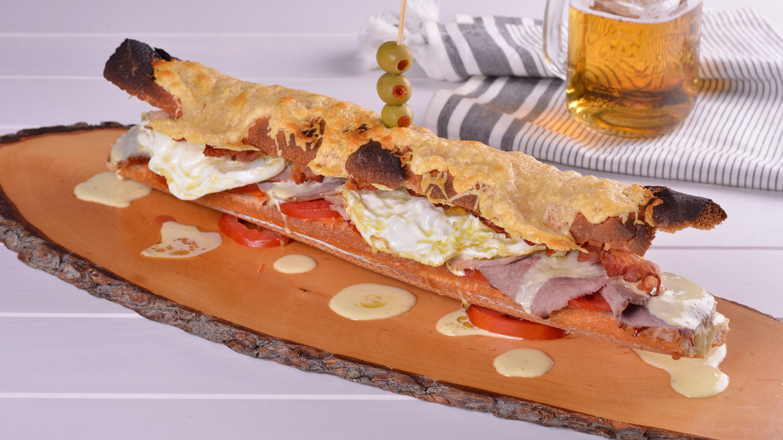 "Chivito" de inspiración charrúa (Bocadillo de ternera asada)