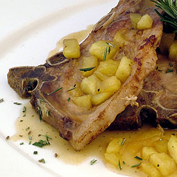 Chuletas en salsa de pimiento y coco