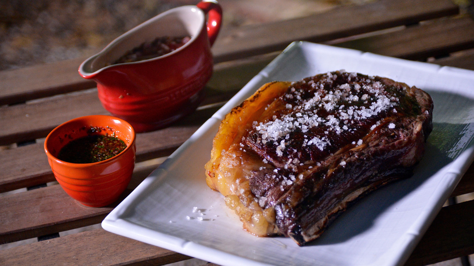 En el capítulo 20 del programa de televisión Cenas al aire libre, el cocinero argentino Pablo Vicari prepara una receta de Chuletón viejo a la parrilla para una cena carnívora.