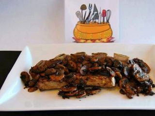 - Empezaremos por elaborar las setas al estragón, poniendo una sartén grande al fuego, entre medio y vivo, con el aceite y la mantequilla, incorporaremos las setas o champiñones cortados en rodajas gruesas y las freíremos, removiendo de 12 a 15 minutos, hasta que veamos que se doran. Añadimos el ajo picado y lo freímos 2 minutos más.