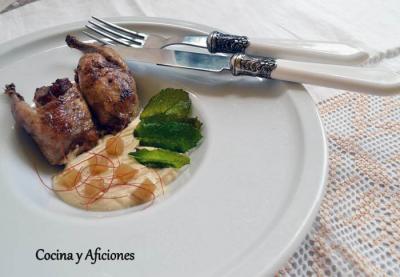 Codornices asadas sobre royal de su jugo, receta paso a paso.