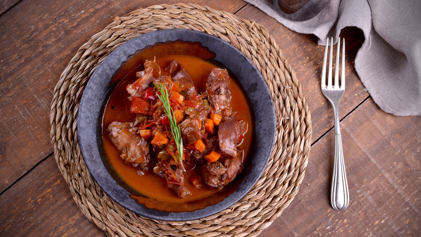 Conejo al vino tinto