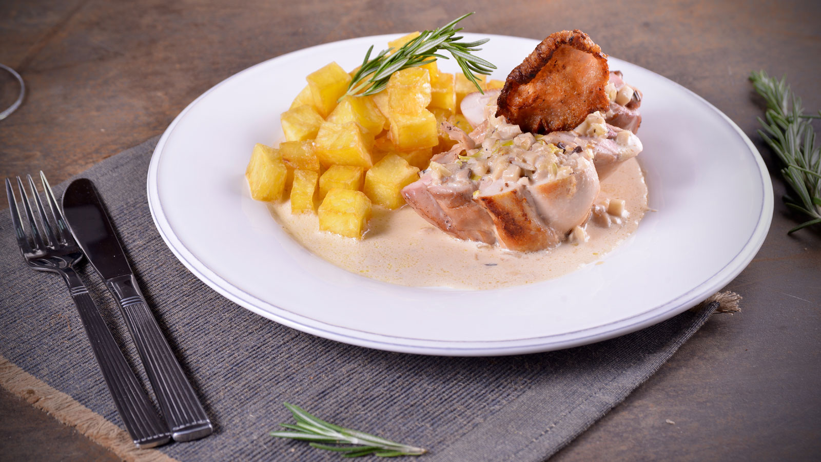Contramuslos de pollo rellenos de foie con crema de boletus