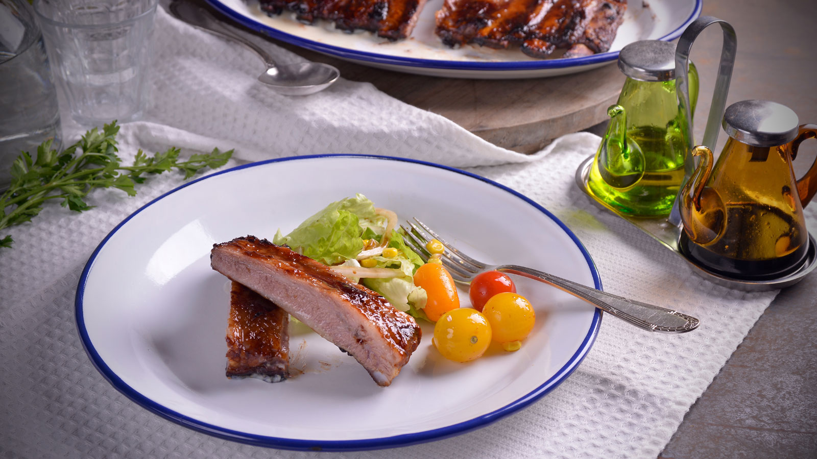 Servimos nuestras costillas acompañadas de la ensalada.