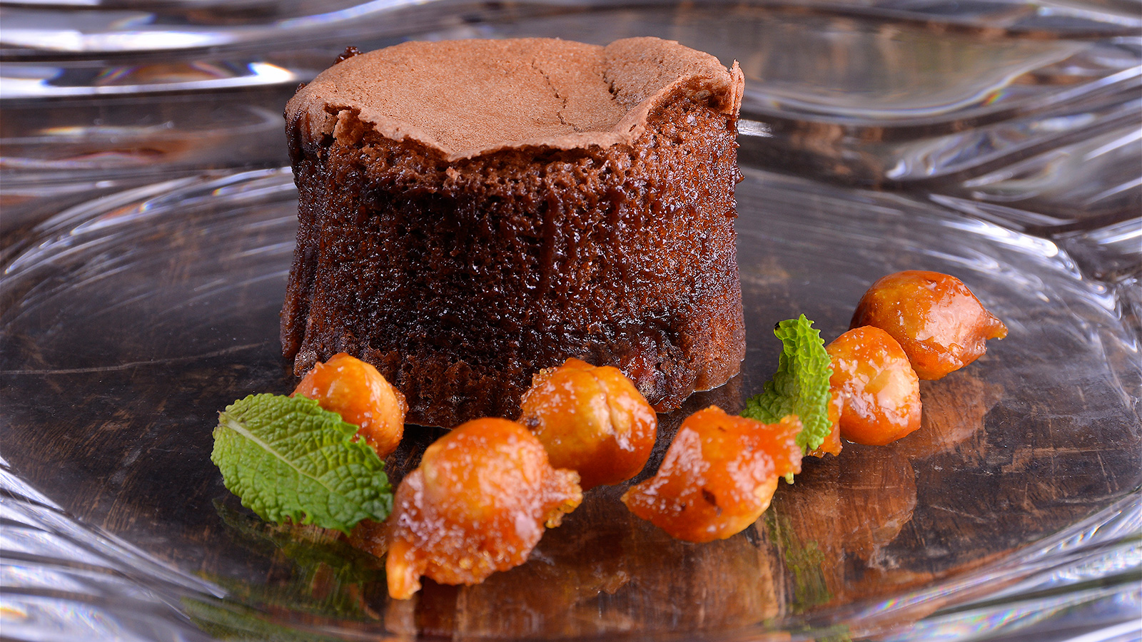Colocamos un corazón de avellanas caramelizadas y horneamos durante 5 minutos a 200ºC.