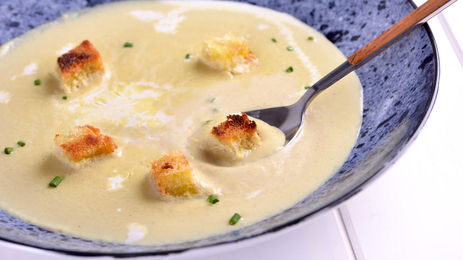 En el capítulo 566 del programa de televisión Los 22 minutos de Julius T4, Julius - Julio Bienert prepara la receta de Crema de coliflor y curry.